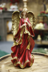 Soška anjela v červených šatách so zlatými prvkami slúži ako stojaca dekorácia hlavne vo vianočnom období. Anjel si určite nájde svoje miesto vo Vašom interiéri aj počas celého roka.