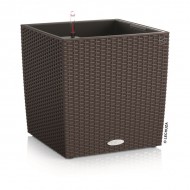 Ratanový kvetináč Lechuza Cube Cottage štvorcového tvaru, all-in-one set s príslušenstvom na pestovanie zeminových rastlín. Ide o vonkajší kvetináč v imitácii ratanu, no vhodný je aj do interiéru - napr. do zimných záhrad či na presklenné chodby s výhľadom do záhrady či na terasu.