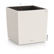 Nádoba s imitáciou ratanu štvorcového tvaru, komplet set s príslušenstvom na pestovanie zeminových rastlín určená do exteriéru (perforované vnútro s úchytmi, hladinomer a minerálnu drenáž na báze zeolitu).