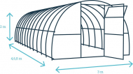 Balenie obsahuje kompletnú konštrukciu, polykarbonát a všetky potrebné montážne prvky ako spojovací materiál, či nožičky v tvare T. Pre tento skleník nie je potrebné budovať základy. Skleník je možné predlžovať až na vami požadovanú dĺžku.