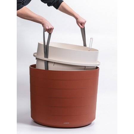 Vďaka kužeľovej upchávke ho môžete použiť doma aj vonku. Pri umiestnení vonku sa odstráni upchávka z dna, aby mohla ľahko odtekať prebytočná dažďová voda. Textilné popruhy uľahčia vytiahnutie vložky a praktické kolieska zaistia pohodlnú manipuláciu.Prstencový zalievací priestor umožní zalievanie z akejkoľvek strany i prístup vzduchu ku koreňom. Veľký zásobník na vodu s objemom 20 litrov zaručí, že vaše rastliny nebudú trpieť smädom. Do kvetináča môžete dať až 60 l substrátu.