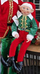 Sediaci vianočný škriatok v klasickom vianočnom prevedení, vhodný ako ozdoba na stromček, do detskej izby alebo na krb. Postavička je veľmi milá, dôkladne vypracovaná.
