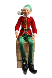 Sediaci vianočný škriatok, dekorácia v tradičných farbách Vianoc, vhodný ako ozdoba na stromček, do detskej izby alebo na krb. Postavička je veľmi milá, dôkladne vypracovaná.